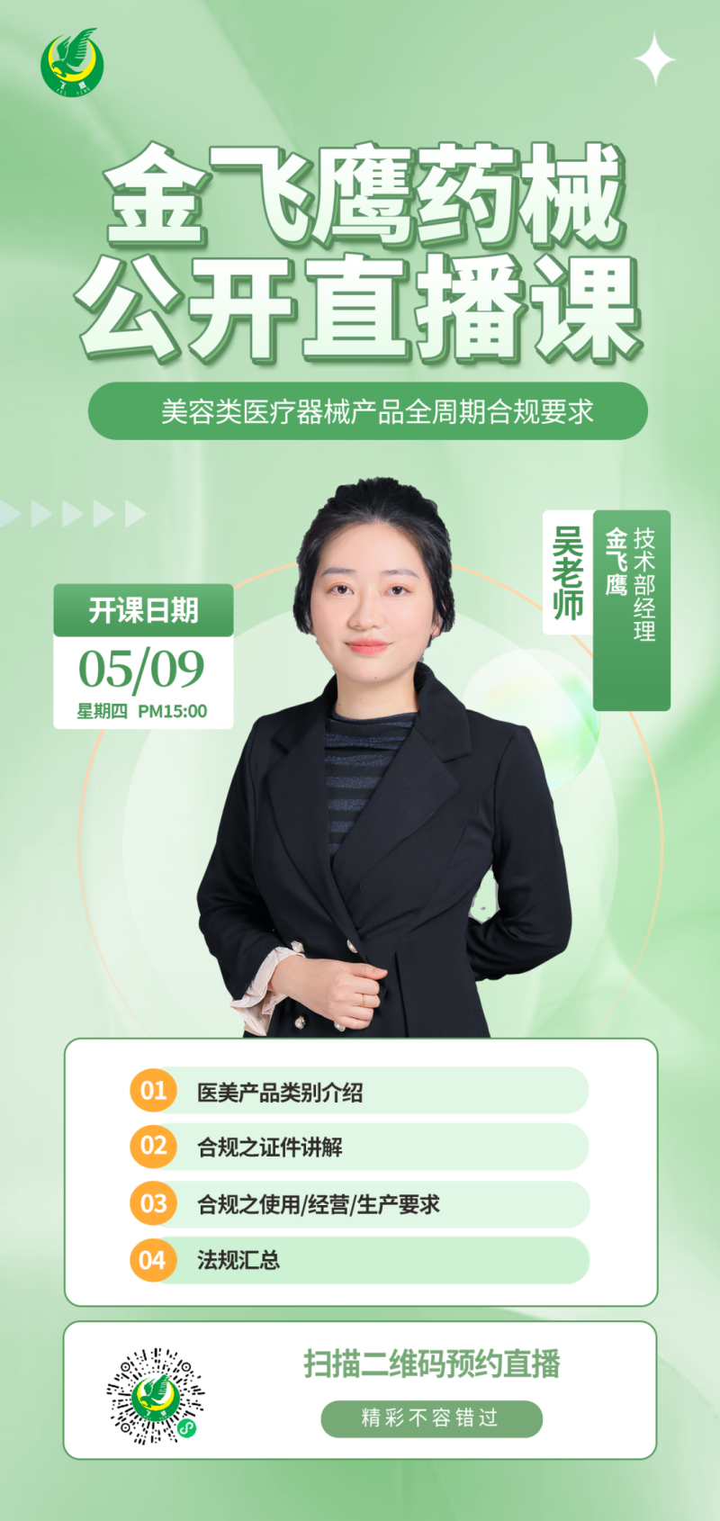 往期直播培訓(xùn)課程支持回放,關(guān)注“金飛鷹藥械咨詢服務(wù)”視頻號并點擊視頻號主頁,即可查看“直播回放”哦~