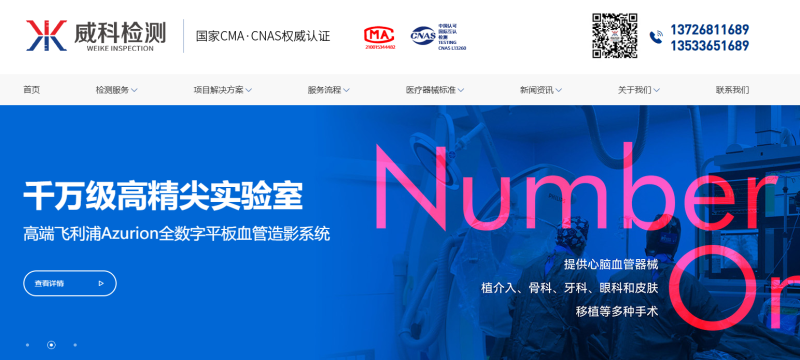 威科檢測(蘇州)有限公司隸屬于威科檢測集團(tuán),全國實驗室布局立足廣東,輻射北京、江蘇、重慶和上海,實驗室設(shè)有大動物實驗中心、醫(yī)療器械檢測中心、生物學(xué)評價中心、毒理實驗中心、病理實驗中心、微生物檢測中心、潔凈環(huán)境檢測中心和血液檢測中心,實驗室參照ISO/IEC 17025和GLP of OECD建立實驗室管理體系并獲有國家級CMA、省級CMA、CNAS資質(zhì)認(rèn)證以及動物使用許可證資質(zhì)。并在廣州、江蘇、湖南、廣西、江西等地區(qū)建設(shè)多個全資子公司。威科依據(jù)CNAS-CL01:2018《檢測和校準(zhǔn)實驗室能力認(rèn)可準(zhǔn)則》及相關(guān)認(rèn)可應(yīng)用準(zhǔn)則、《檢驗檢測機(jī)構(gòu)資質(zhì)認(rèn)定能力評價 檢驗檢測機(jī)構(gòu)通用要求》、《檢驗檢測機(jī)構(gòu)資質(zhì)認(rèn)定能力評價 醫(yī)療器械檢驗機(jī)構(gòu)要求》建立質(zhì)量管理體系,依照GLP準(zhǔn)則管理要求運(yùn)行動物實驗室,取得CNAS實驗室認(rèn)可資質(zhì),國家CMA資質(zhì),廣東省CMA資質(zhì)和動物使用許可證資質(zhì)。威科檢測具有專業(yè)的檢驗技術(shù)團(tuán)隊和業(yè)務(wù)運(yùn)營團(tuán)隊,配置了先進(jìn)精準(zhǔn)的檢測設(shè)備,實驗室面積約11000平方米,環(huán)境設(shè)施包括大動物實驗中心、SPF級動物房、病理檢測室、化學(xué)表征分析實驗室、微生物實驗室、醫(yī)療器械性能檢測實驗室等。威科檢測專注于生物醫(yī)藥檢驗領(lǐng)域,提供生物學(xué)評價試驗、大動物實驗研究、化學(xué)表征測試、微生物檢測、消毒滅菌驗證、理化性能檢測、潔凈室檢測、包裝驗證、老化試驗、運(yùn)輸實驗、體系認(rèn)證等服務(wù),致力于共創(chuàng)生物醫(yī)藥檢測服務(wù)創(chuàng)新平臺,促進(jìn)醫(yī)療器械產(chǎn)業(yè)實現(xiàn)高質(zhì)量發(fā)展。