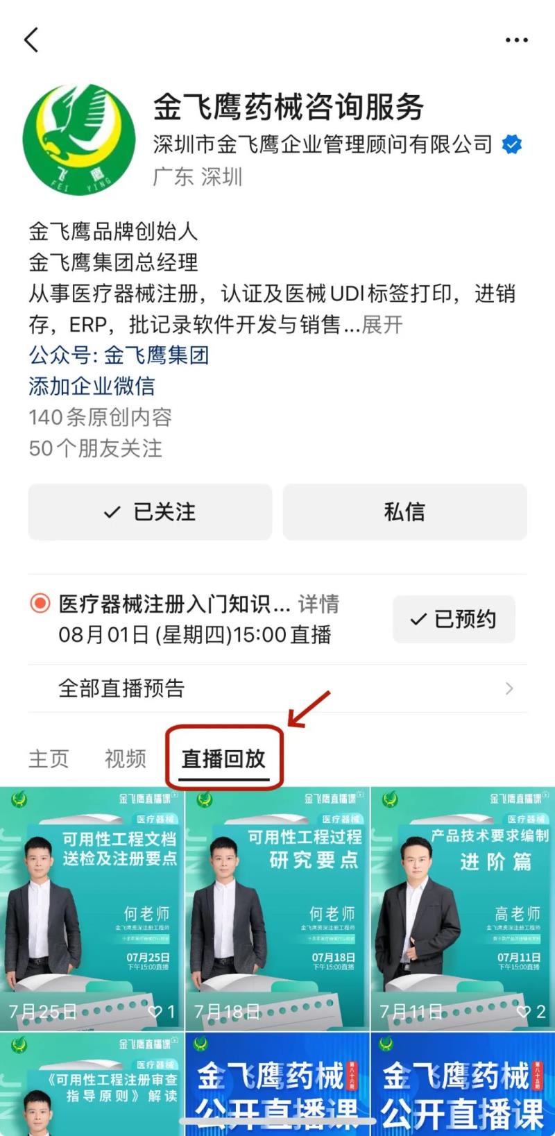 金飛鷹直播培訓(xùn)簡(jiǎn)介 金飛鷹直播培訓(xùn),是每周一次的固定培訓(xùn)欄目,優(yōu)選金飛鷹國(guó)內(nèi)外資深注冊(cè)/項(xiàng)目老師定期為大家講解醫(yī)療器械注冊(cè)相關(guān)知識(shí),解答大家在醫(yī)療器械注冊(cè)過(guò)程中的諸多疑問(wèn)。 此前我們已為大家?guī)?lái)新版醫(yī)療器械生物學(xué)評(píng)價(jià)標(biāo)準(zhǔn)、新版醫(yī)療器械風(fēng)險(xiǎn)管理標(biāo)準(zhǔn)、醫(yī)療器械軟件注冊(cè)、新版醫(yī)療器械經(jīng)營(yíng)質(zhì)量管理規(guī)范等共計(jì)99次線上培訓(xùn)課程,有興趣的可點(diǎn)擊視頻號(hào)直播回放進(jìn)行查看~另外大家也一定很關(guān)注接下來(lái)的培訓(xùn)主題,相關(guān)培訓(xùn)預(yù)告我們會(huì)陸續(xù)添加至視頻號(hào),請(qǐng)大家持續(xù)關(guān)注哦! 劃重點(diǎn) 往期直播培訓(xùn)課程支持回放,關(guān)注“金飛鷹藥械咨詢服務(wù)”視頻號(hào)并點(diǎn)擊視頻號(hào)主頁(yè),即可查看“直播回放”哦~ 醫(yī)療器械注冊(cè)咨詢認(rèn)準(zhǔn)金飛鷹 深圳:0755-86194173 廣州:020 - 82177679 四川:028 - 68214295 湖南:0731-22881823 湖北:181-3873-5940 江蘇:135-5494-7827 廣西:188-2288-8311 海南:135-3810-3052
