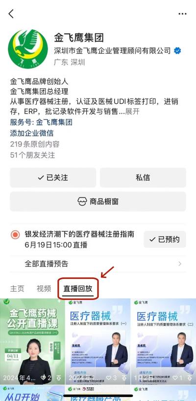 往期直播培訓(xùn)課程支持回放,關(guān)注“金飛鷹藥械咨詢服務(wù)”視頻號并點擊視頻號主頁,即可查看“直播回放”哦~