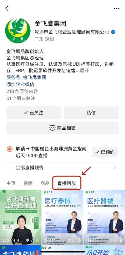 往期直播培訓(xùn)課程支持回放,關(guān)注“金飛鷹藥械咨詢(xún)服務(wù)”視頻號(hào)并點(diǎn)擊視頻號(hào)主頁(yè),即可查看“直播回放”哦~