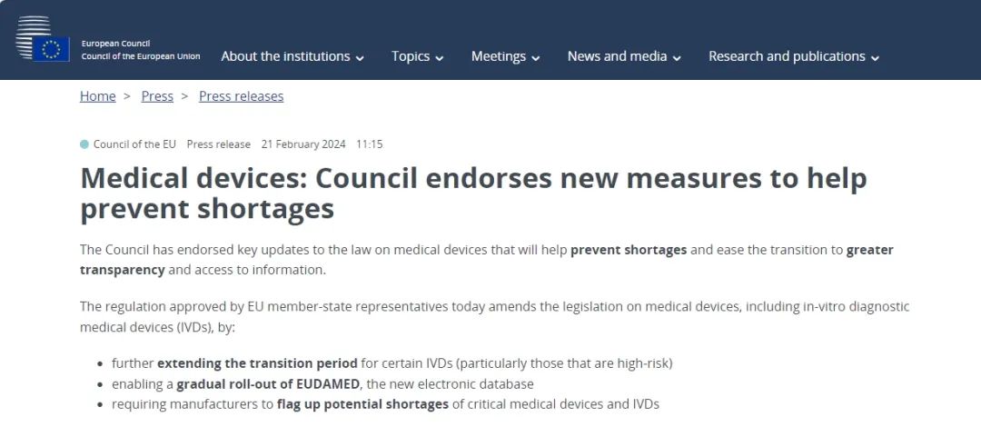 ? 進一步延長某些體外診斷器械(尤其是高風險體外診斷器械)的過渡期