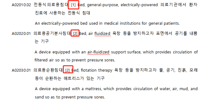 1. 查閱Regulation on Medical Device Groups and Class by Group的Attachment,法規(guī)中規(guī)定了分類(lèi)規(guī)則以及產(chǎn)品的代碼和風(fēng)險(xiǎn)等級(jí),可以根據(jù)產(chǎn)品定義/用途等判斷產(chǎn)品的等級(jí),我們隨附了示例圖,紅框的數(shù)字為產(chǎn)品的風(fēng)險(xiǎn)等級(jí)。 2. 在韓國(guó)已注冊(cè)產(chǎn)品的數(shù)據(jù)庫(kù)(可聯(lián)系我們獲取鏈接)中,用產(chǎn)品名稱(英文/韓文)進(jìn)行檢索,查找類(lèi)似產(chǎn)品在MFDS中的分類(lèi)。 上述方法需一并查詢以確定產(chǎn)品在韓國(guó)的分類(lèi)。當(dāng)然,您也可以直接聯(lián)系我們幫您查詢~