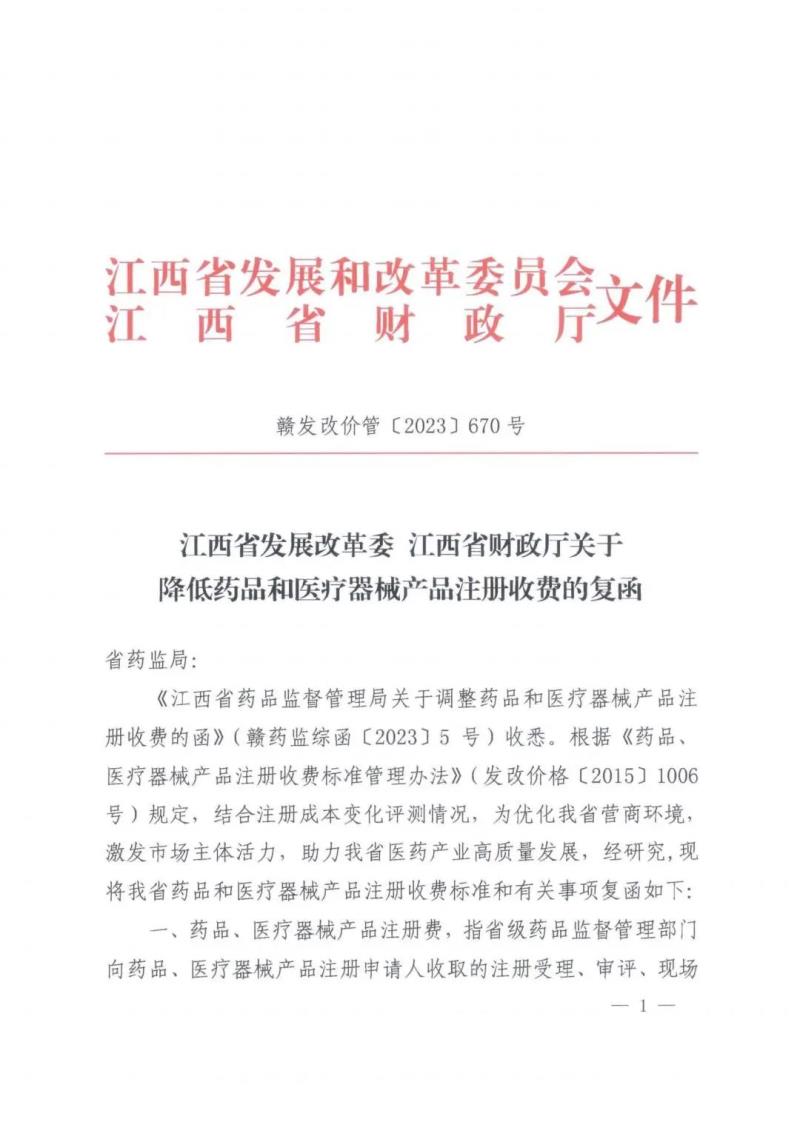 近日,江西省發(fā)展和改革委員會(huì)官網(wǎng)發(fā)布《江西省發(fā)展改革委江西省財(cái)政廳關(guān)于降低藥品和醫(yī)療器械產(chǎn)品注冊(cè)收費(fèi)的復(fù)函》,其中指出,藥品、醫(yī)療器械產(chǎn)品注冊(cè)收費(fèi)標(biāo)準(zhǔn)按現(xiàn)行規(guī)定標(biāo)準(zhǔn)的70%收取,調(diào)整后具體標(biāo)準(zhǔn)如下: