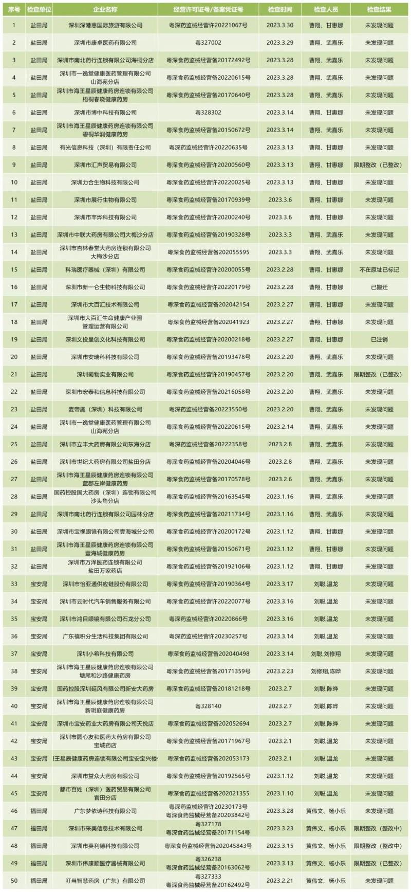 4月13日,深圳市市場(chǎng)監(jiān)督管理局官網(wǎng)公布醫(yī)療器械經(jīng)營(yíng)企業(yè)監(jiān)督檢查結(jié)果(2023年第二期),共對(duì)318家醫(yī)療器械經(jīng)營(yíng)企業(yè)進(jìn)行了監(jiān)督檢查,其中有11家需要整改,具體如下: