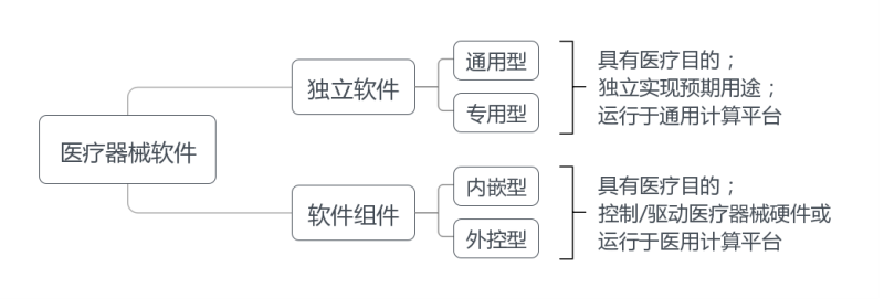 醫(yī)療器械軟件包括本身即為醫(yī)療器械的軟件或者醫(yī)療器械內(nèi)含的軟件,前者即醫(yī)療器械獨(dú)立軟件(簡(jiǎn)稱(chēng)獨(dú)立軟件),后者即醫(yī)療器械軟件組件(簡(jiǎn)稱(chēng)軟件組件)。