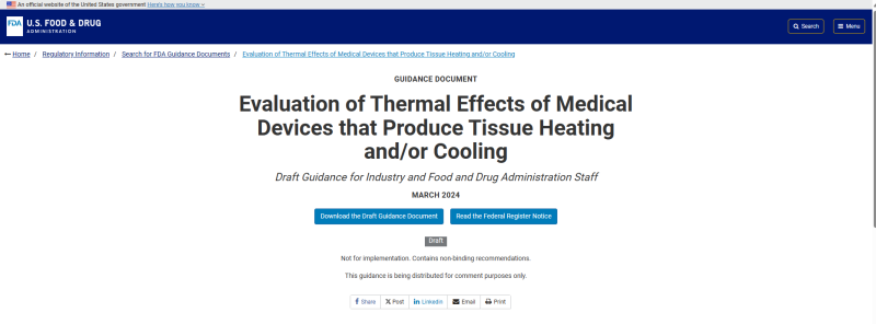 FDA(美國食品藥品監(jiān)督管理局)近日發(fā)布了一份重要的指南草案,專門針對那些能夠產(chǎn)生組織加熱和/或冷卻效應(yīng)的醫(yī)療器械的熱效應(yīng)評估進(jìn)行了詳細(xì)闡述。