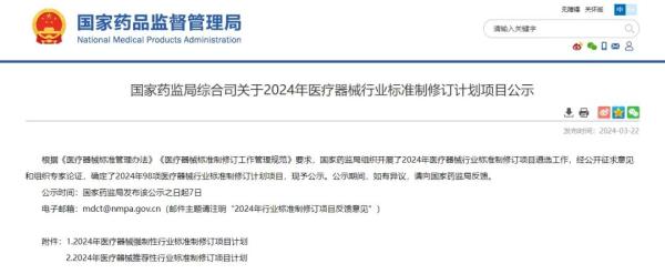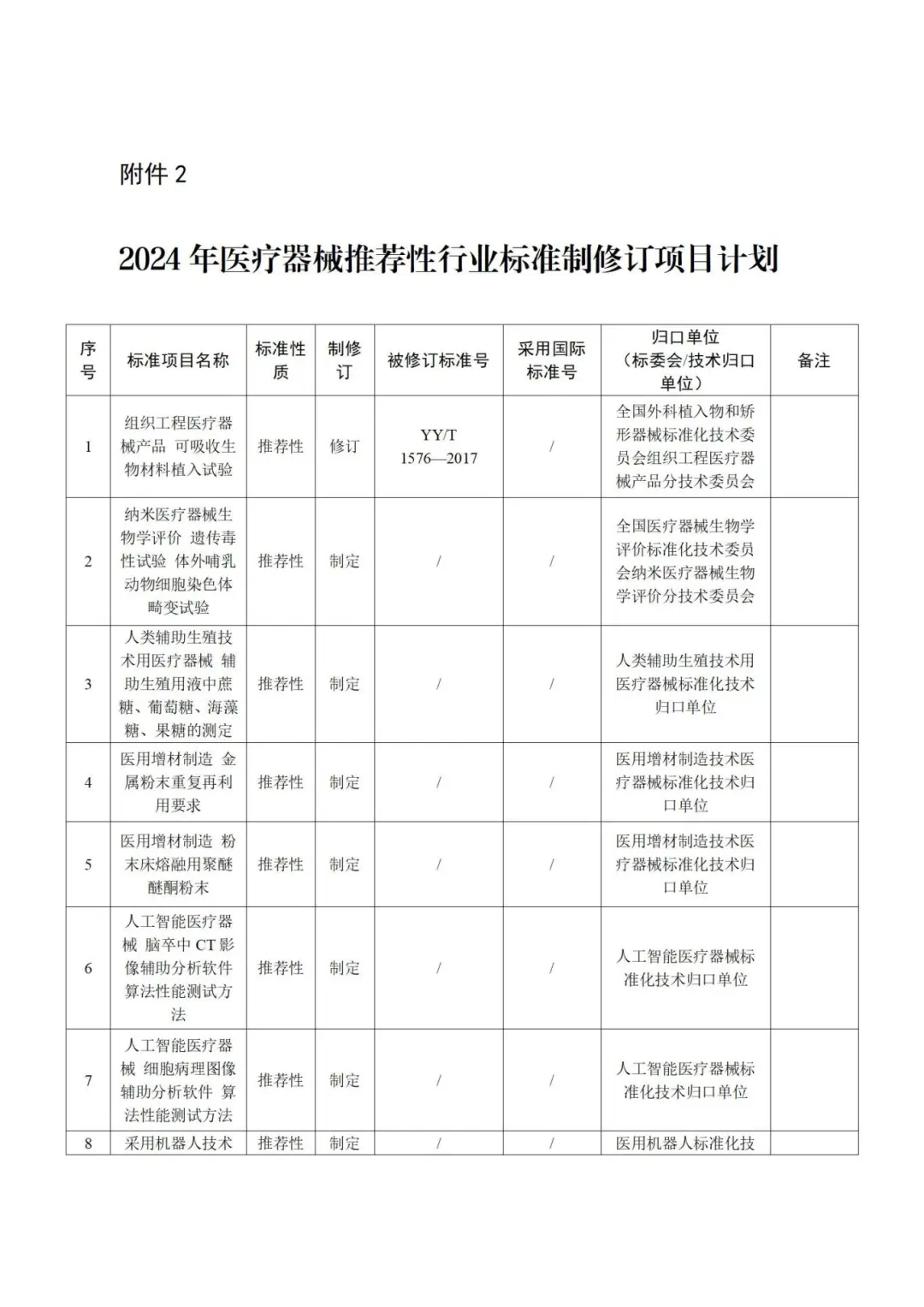 ↑ 2024年醫(yī)療器械推薦性行業(yè)標(biāo)準(zhǔn)制修訂項目計劃