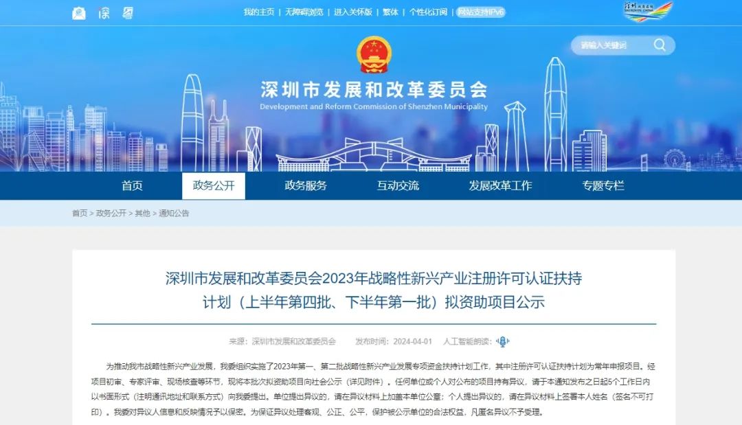 去年5月,深圳市發(fā)展和改革委員會(以下簡稱“深圳發(fā)改委”)官網(wǎng)發(fā)布《2023年戰(zhàn)略性新興產(chǎn)業(yè)專項資金項目申報指南(第一批)的通知》,其中提到的支持領域包括半導體與集成電路、超高清視頻顯示、儲能、低碳零碳負碳、智能網(wǎng)聯(lián)汽車、高端醫(yī)療器械、大健康等領域。扶持計劃則包含市級工程研究中心組建及提升項目、公共服務平臺組建及提升項目、產(chǎn)業(yè)化事后補助、新技術新產(chǎn)品示范應用推廣、注冊許可認證、國家項目配套等類別。其中注冊許可認證扶持計劃為常年申報項目。針對醫(yī)療器械國內注冊許可認證,其資助標準如下:對按照常規(guī)渠道申報獲批的第二、三類醫(yī)療器械產(chǎn)品,擇優(yōu)按經(jīng)評審核定項目總投資的40%給予事后資助,最高不超過300、500萬元;對按照特別審批渠道申報獲批的第二、三類創(chuàng)新醫(yī)療器械產(chǎn)品,資助上限再分別提高100萬元。單個主體每年累計支持額度不超過1000萬元。