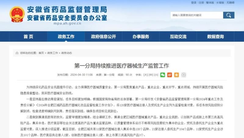 四是強(qiáng)化部門協(xié)作整合資源,工作質(zhì)效更加顯著。按照省局《2024年全省醫(yī)療器械生產(chǎn)監(jiān)督檢查工作計(jì)劃》要求,加強(qiáng)與省局處室、審評(píng)查驗(yàn)中心工作聯(lián)動(dòng)和信息溝通,對(duì)兼具醫(yī)療器械注冊(cè)人、備案人的企業(yè)與合肥市市場監(jiān)管局開展聯(lián)合監(jiān)管,有效提升監(jiān)管效能,實(shí)現(xiàn)源頭嚴(yán)防、過程嚴(yán)管、風(fēng)險(xiǎn)嚴(yán)控,保障上市醫(yī)療器械質(zhì)量安全。