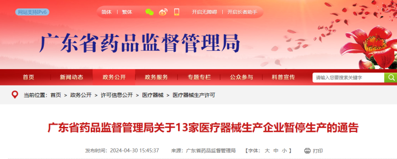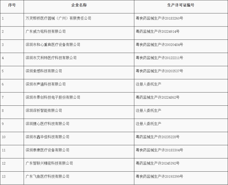 近期,廣東省藥品監(jiān)督管理局組織開(kāi)展醫(yī)療器械生產(chǎn)企業(yè)監(jiān)督檢查,發(fā)現(xiàn)以下13家企業(yè)質(zhì)量管理體系存在嚴(yán)重缺陷,不符合《醫(yī)療器械生產(chǎn)質(zhì)量管理規(guī)范》相關(guān)規(guī)定,廣東省藥品監(jiān)督管理局已依法采取責(zé)令暫停生產(chǎn)的控制措施。