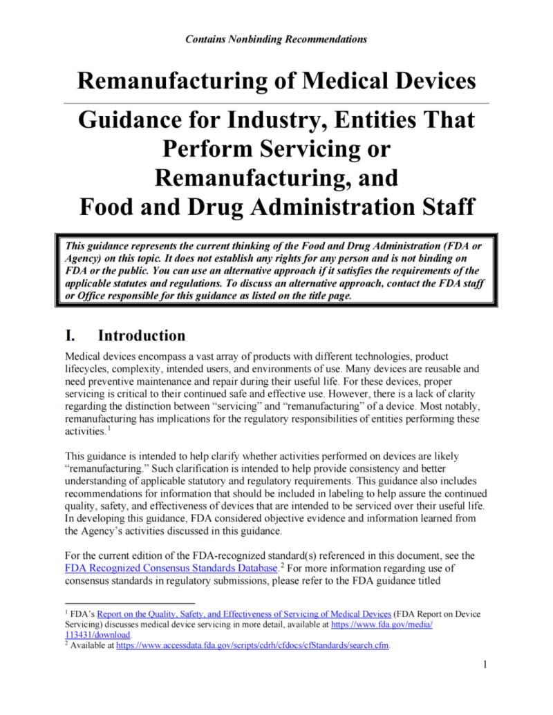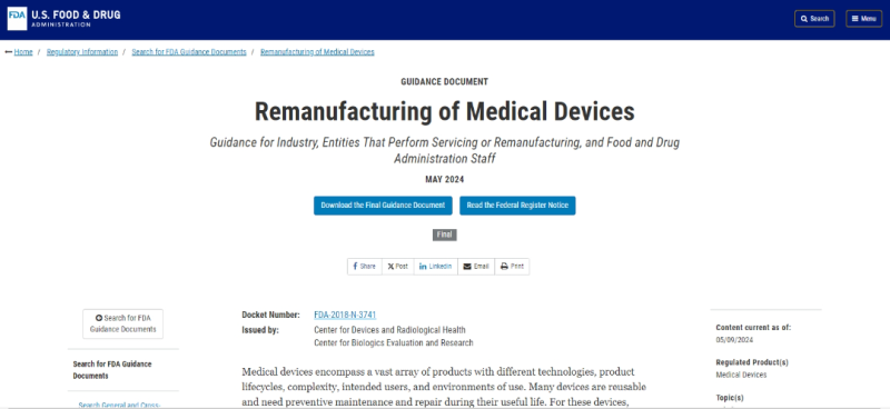 FDA動(dòng)態(tài)丨“醫(yī)療器械再制造”最終指南發(fā)布