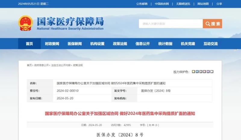 5月20日,國家醫(yī)療保障局發(fā)布《關(guān)于加強(qiáng)區(qū)域協(xié)同做好2024年醫(yī)藥集中采購提質(zhì)擴(kuò)面的通知》(以下簡稱《通知》),對(duì)2024年集中采購工作的關(guān)鍵任務(wù)和政策要求進(jìn)行了系統(tǒng)部署。
