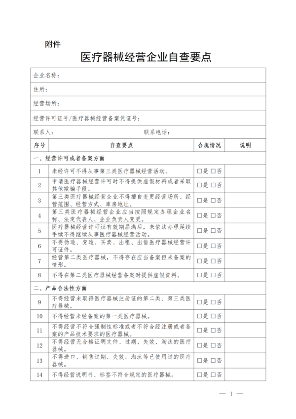 ↑ 醫(yī)療器械經營企業(yè)自查要點