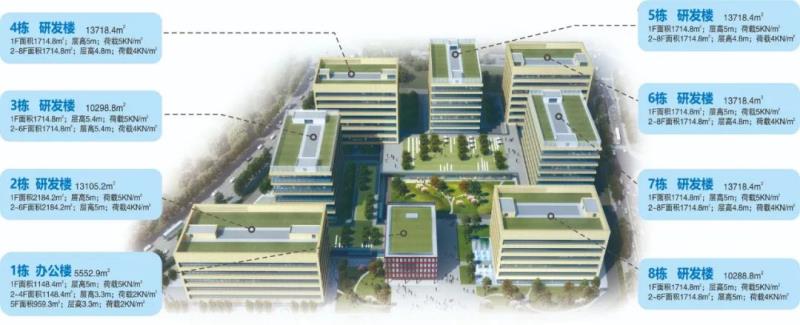 三醫(yī)智造中心一期為工業(yè)載體,總占地123畝,總建筑面積25萬㎡,其中產(chǎn)業(yè)建筑面積18.3萬㎡,建設(shè)高承重、高層高標(biāo)準(zhǔn)廠房,配置雙回路供電、蒸汽站、污水處理站、?;瘞臁⒌拱喾康仍O(shè)施。層高4.8-7.2m,承重0.8-1.2噸,面積單層最大可達1萬㎡。主要引入綜合制劑、生物技術(shù)藥、醫(yī)療器械、細胞治療、綠色食品、電子信息等項目的中試與生產(chǎn)。