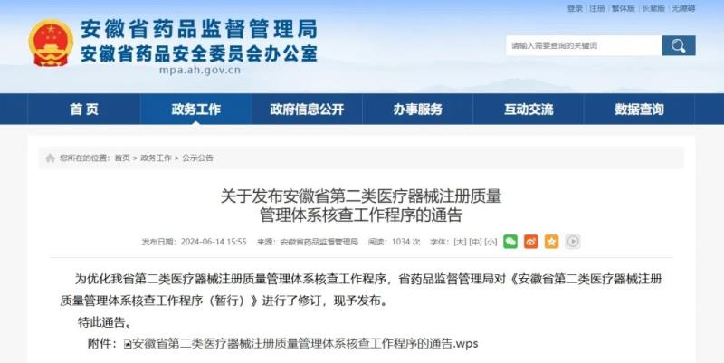 第二十四條 本程序自發(fā)布之日起施行。《關于發(fā)布安徽省第二類醫(yī)療器械注冊質(zhì)量管理體系核查工作程序(暫行)的通告》(安徽省藥品監(jiān)督管理局通告2019年第4號)同時廢止。