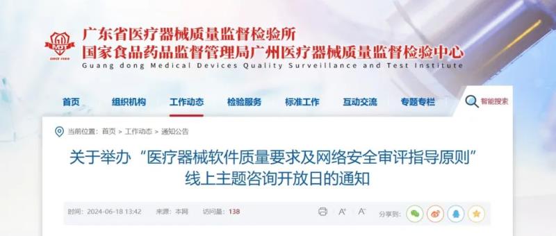 近日,廣東省醫(yī)療器械質(zhì)量監(jiān)督檢驗(yàn)所官網(wǎng)發(fā)布通知稱,該所定于7月1日(周一)舉辦“醫(yī)療器械軟件質(zhì)量要求及網(wǎng)絡(luò)安全審評(píng)指導(dǎo)原則”線上主題咨詢開放日活動(dòng),具體內(nèi)容及參會(huì)方式如下: