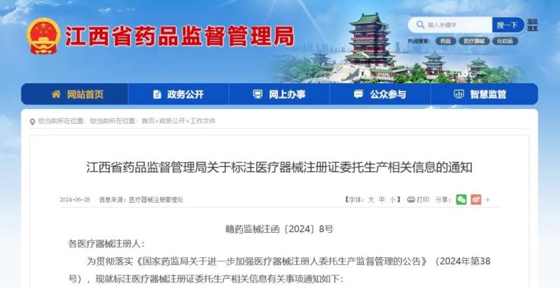 近日,繼江蘇省、湖北省、廣東省、湖南省、廣西壯族自治區(qū)、云南省、吉林省(具體政策可點擊右側(cè)鏈接回顧→醫(yī)療器械委托生產(chǎn)信息標注)后,江西省藥監(jiān)局也發(fā)布了《關(guān)于標注醫(yī)療器械注冊證委托生產(chǎn)相關(guān)信息的通知》,相關(guān)事項具體如下: