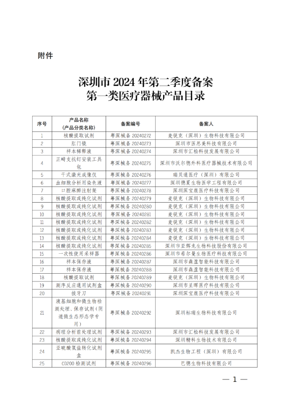 近日,深圳市市場(chǎng)監(jiān)督管理局公布了2024年第二季度備案的第一類醫(yī)療器械產(chǎn)品目錄,共計(jì)有183個(gè)產(chǎn)品,以體外診斷試劑類產(chǎn)品居多,具體如下: