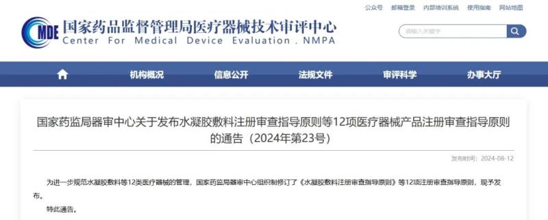 8月12日,國家藥監(jiān)局器審中心發(fā)布《水凝膠敷料注冊(cè)審查指導(dǎo)原則》《透析液過濾器注冊(cè)審查指導(dǎo)原則》《一次性使用靜脈留置針注冊(cè)審查指導(dǎo)原則》等12項(xiàng)醫(yī)療器械注冊(cè)審查指導(dǎo)原則,具體清單如下: