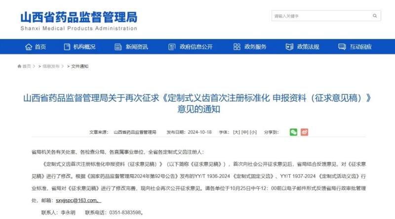 近日,山西省藥監(jiān)局在原有《定制式義齒首次注冊標準化申報資料(征求意見稿)》基礎上進行修改完善,附件共包括首次注冊申報資料及要求、符合性聲明、風險分析資料、產(chǎn)品技術要求、說明書及標簽樣稿等,并再次向社會公開征求意見。