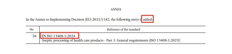 近日,歐盟官方日?qǐng)?bào)發(fā)布了EU 2024/2631:關(guān)于修訂(EU) 2021/1182號(hào)實(shí)施決定中有關(guān)保健品無(wú)菌加工的協(xié)調(diào)標(biāo)準(zhǔn)內(nèi)容。該標(biāo)準(zhǔn)的實(shí)施日期為2024年10月9日。