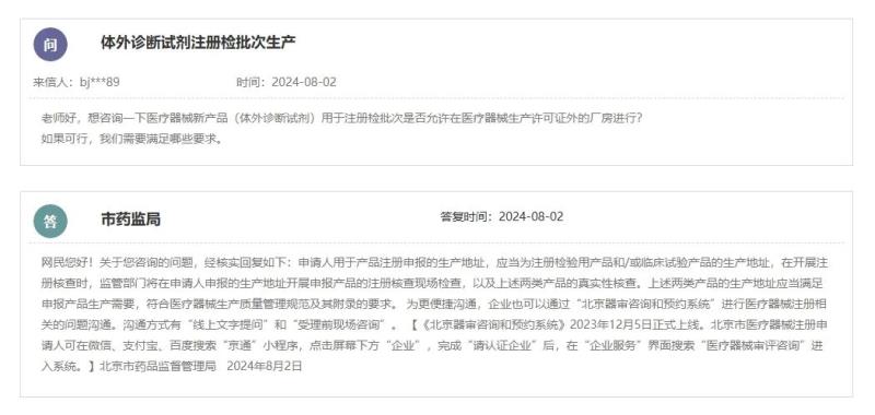 根據(jù)北京市藥監(jiān)局的答復(fù),申請人用于產(chǎn)品注冊申報的生產(chǎn)地址,應(yīng)當(dāng)為注冊檢驗用產(chǎn)品和/或臨床試驗產(chǎn)品的生產(chǎn)地址,在開展注冊核查時,監(jiān)管部門將在申請人申報的生產(chǎn)地址開展申報產(chǎn)品的注冊核查現(xiàn)場檢查,以及上述兩類產(chǎn)品的真實性核查。上述兩類產(chǎn)品的生產(chǎn)地址應(yīng)當(dāng)滿足申報產(chǎn)品生產(chǎn)需要,符合醫(yī)療器械生產(chǎn)質(zhì)量管理規(guī)范及其附錄的要求。
