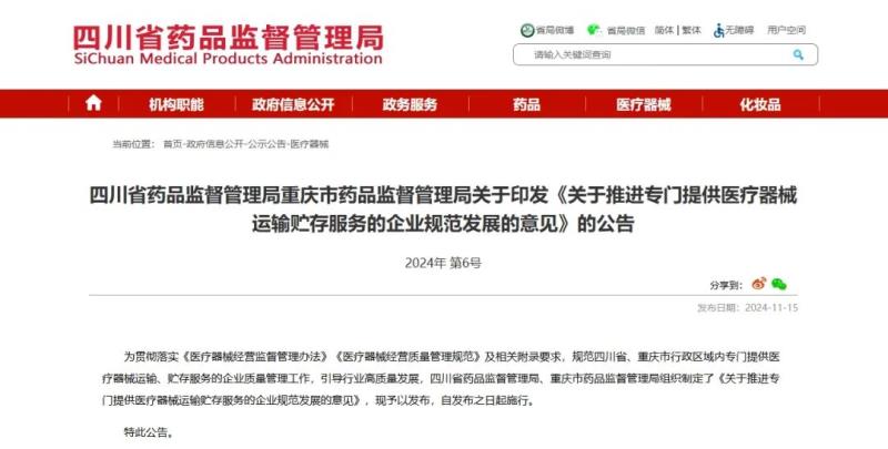 近日,四川省藥監(jiān)局與重慶市藥監(jiān)局聯(lián)合發(fā)布《關(guān)于推進(jìn)專門提供醫(yī)療器械運(yùn)輸貯存服務(wù)的企業(yè)規(guī)范發(fā)展的意見(jiàn)》(以下簡(jiǎn)稱《意見(jiàn)》),以規(guī)范四川省、重慶市行政區(qū)域內(nèi)專門提供醫(yī)療器械運(yùn)輸、貯存服務(wù)的企業(yè)質(zhì)量管理工作,引導(dǎo)行業(yè)高質(zhì)量發(fā)展。