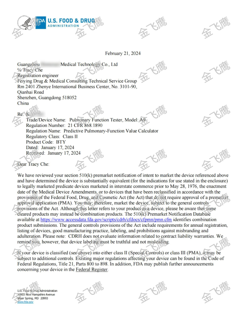 昨天新鮮出爐的510(k) 獲批件