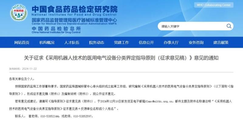 近日,國(guó)家藥監(jiān)局醫(yī)療器械標(biāo)準(zhǔn)管理中心發(fā)布《采用機(jī)器人技術(shù)的醫(yī)用電氣設(shè)備分類界定指導(dǎo)原則(征求意見稿)》(以下簡(jiǎn)稱《指導(dǎo)原則》),并向社會(huì)公開征求意見。