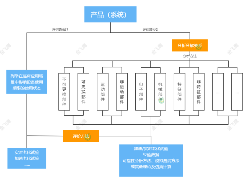 2)通過(guò)將產(chǎn)品(系統(tǒng))分解為不同子系統(tǒng)/部件的方式進(jìn)行評(píng)價(jià)。首先應(yīng)詳細(xì)分析分解關(guān)系,在此基礎(chǔ)上通過(guò)不同的分解方式(如將產(chǎn)品分為關(guān)鍵部件及非關(guān)鍵部件和/或特征部件及非特征部件和/或可更換部件及不可更換部件和/或運(yùn)動(dòng)部件及非運(yùn)動(dòng)部件和/或電子部件及機(jī)械部件等)確定產(chǎn)品的使用期限。