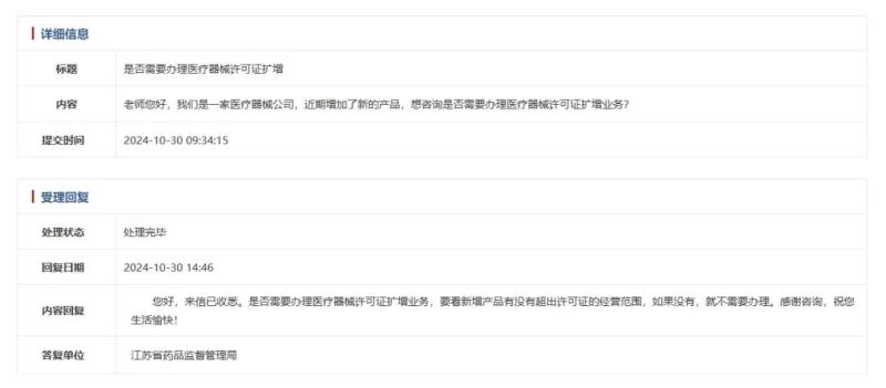 根據(jù)江蘇省藥監(jiān)局的答復(fù),是否需要辦理醫(yī)療器械許可證擴增業(yè)務(wù),要看新增產(chǎn)品有沒有超出許可證的經(jīng)營范圍,如果沒有,就不需要辦理。如,現(xiàn)有生產(chǎn)許可證范圍包含了“Ⅱ類09物理治療器械”,新增的產(chǎn)品也是Ⅱ類09物理治療器械,就無需辦理許可證擴增業(yè)務(wù)。