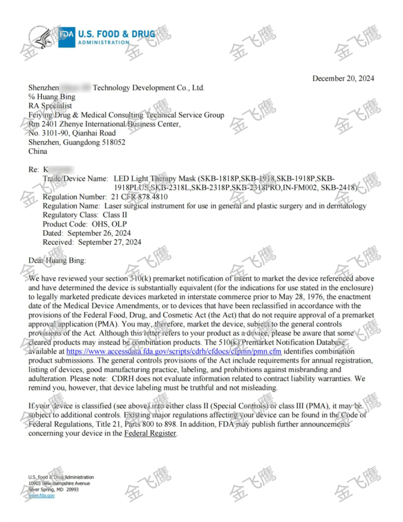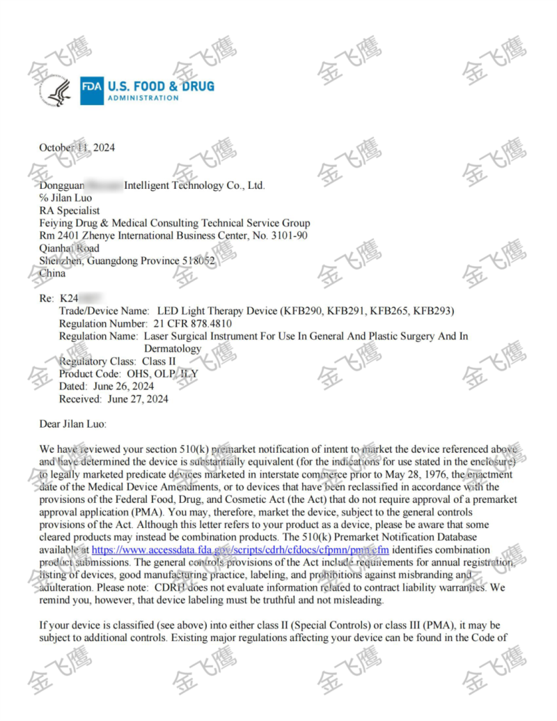 取得雙K號的案例實屬首例,但紅藍光面罩我們此前已積累了不少案例,今年10月,我們輔導的東莞一家企業(yè)成功獲批了紅藍光面罩510(k),2022年也就此類產(chǎn)品宣傳過一次。(戳此回顧→紅藍光面罩)