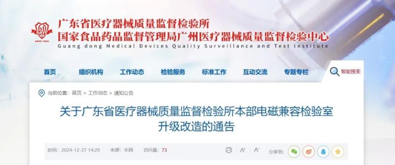 近日,廣東省醫(yī)療器械質(zhì)量監(jiān)督檢驗(yàn)所發(fā)布通告稱(chēng),該所本部電磁兼容檢驗(yàn)室將進(jìn)行實(shí)驗(yàn)室升級(jí)改造及屏蔽室、暗室等設(shè)施維修保養(yǎng),期間屏蔽室、暗室等全部設(shè)施場(chǎng)地將被圍蔽施工,無(wú)法正常使用,相關(guān)檢驗(yàn)設(shè)備也將暫停使用。受此影響,對(duì)2024年12月30日至2025年1月20日期間受理的送檢廣州本部電磁兼容檢驗(yàn)室的檢驗(yàn)任務(wù),其檢驗(yàn)周期將在原有周期基礎(chǔ)上增加15個(gè)工作日。