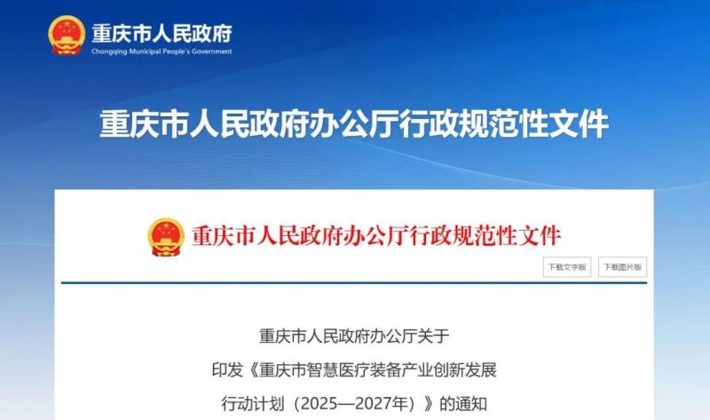 近日,重慶市人民政府發(fā)布《重慶市智慧醫(yī)療裝備產(chǎn)業(yè)創(chuàng)新發(fā)展行動(dòng)計(jì)劃(2025—2027年)》(以下簡稱《行動(dòng)計(jì)劃》),在第三部分“產(chǎn)業(yè)政策”中提到: