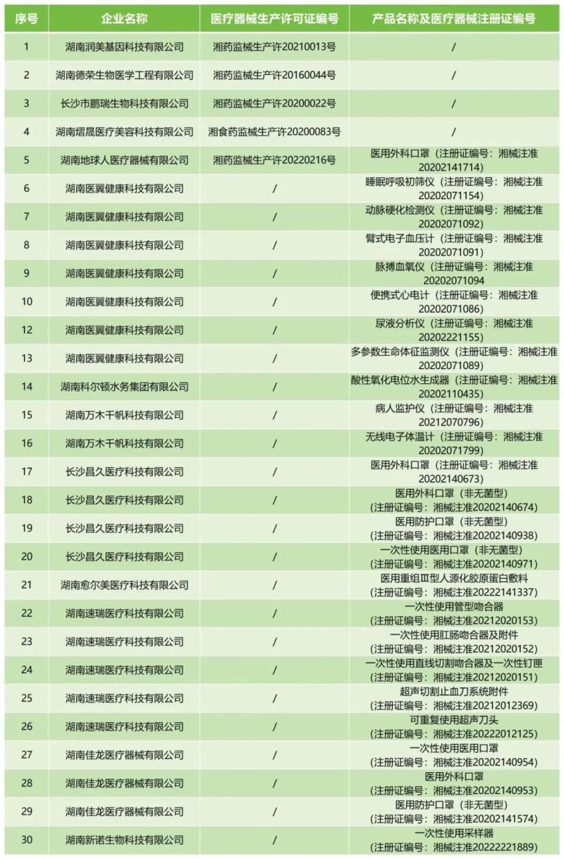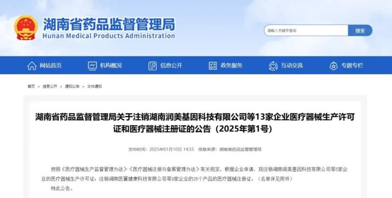 近日,湖南省藥監(jiān)局發(fā)布公告稱,按照《醫(yī)療器械監(jiān)督管理?xiàng)l例》《醫(yī)療器械生產(chǎn)監(jiān)督管理辦法》有關(guān)規(guī)定,根據(jù)企業(yè)申請(qǐng),現(xiàn)注銷湖南潤(rùn)美基因科技有限公司等5家企業(yè)的醫(yī)療器械生產(chǎn)許可證;注銷湖南醫(yī)翼健康科技有限公司、長(zhǎng)沙昌久醫(yī)療科技有限公司等8家企業(yè)的25個(gè)產(chǎn)品的醫(yī)療器械注冊(cè)證,具體明細(xì)如下: