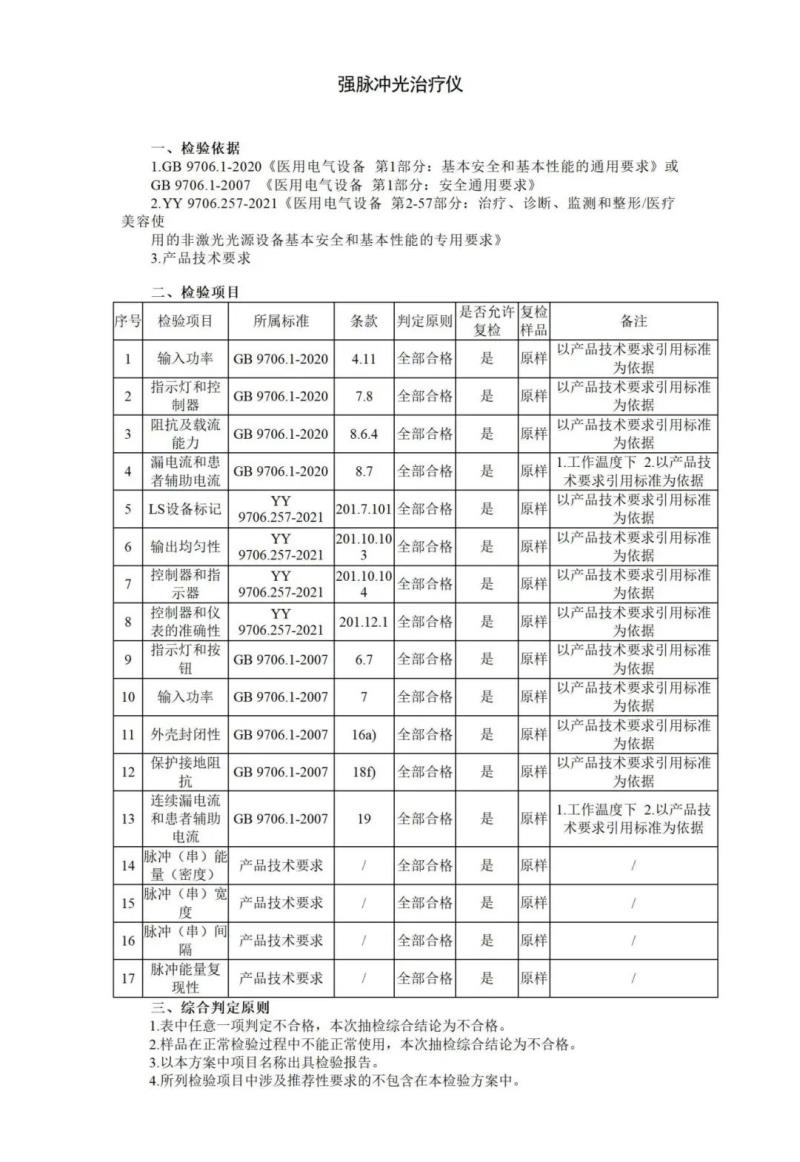 3月26日,國家藥監(jiān)局官網(wǎng)發(fā)布《2025年國家醫(yī)療器械抽檢產品檢驗方案》,其中強脈沖光