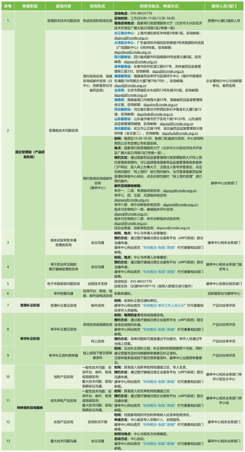如何高效解決這些疑問,避免走彎路?本期文章我們轉載了國家藥監(jiān)局器審中心對外公開的審評咨詢溝通路徑匯總,從產(chǎn)品立項到審評補正,企業(yè)可在不同的階段(如產(chǎn)品研發(fā)階段、審評補正階段等)選擇適用的咨詢方式解決問題,助力產(chǎn)品順利獲批!醫(yī)械企業(yè)可將此表格作為注冊工作的“導航地圖”,遇到問題時快速找到對應的咨詢渠道,避免因溝通不暢導致的注冊時長增加,進而影響產(chǎn)品上市進度。強烈建議大家轉發(fā)收藏!