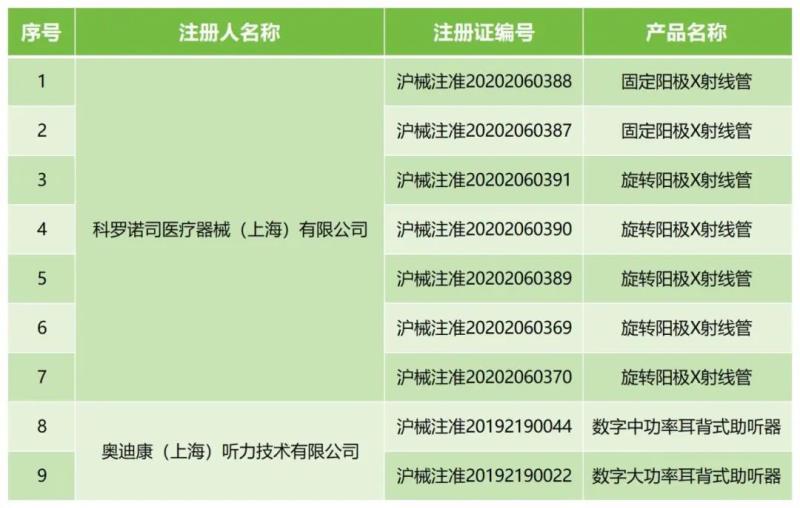 4月21日,上海市藥監(jiān)局發(fā)布通告稱,按照《醫(yī)療器械監(jiān)督管理?xiàng)l例》的規(guī)定,根據(jù)企業(yè)申請,該局已注銷科羅諾司醫(yī)療器械(上海)有限公司等2家企業(yè)共9個產(chǎn)品的醫(yī)療器械注冊證,包括固定陽極X射線管、數(shù)字中功率耳背式助聽器等,具體明細(xì)如下: