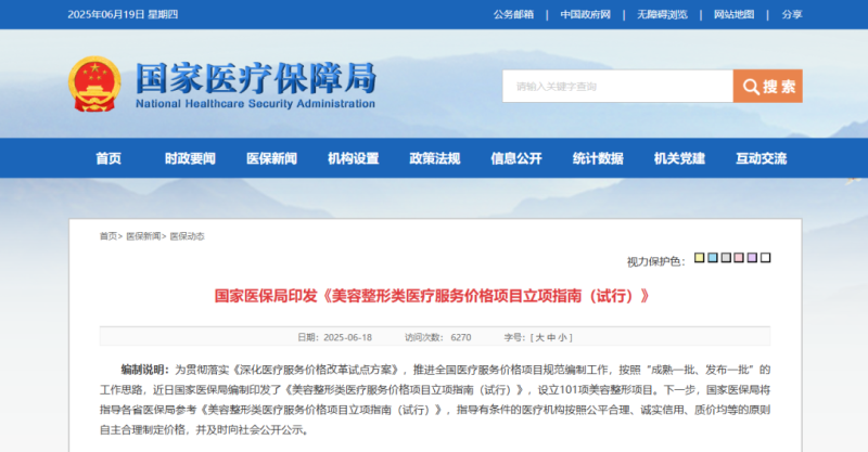 6月18日,國(guó)家醫(yī)保局印發(fā)了《美容整形類(lèi)醫(yī)療服務(wù)價(jià)格項(xiàng)目立項(xiàng)指南(試行)》(以下簡(jiǎn)稱(chēng)《指南》),共規(guī)定了101項(xiàng)美容整形項(xiàng)目的服務(wù)價(jià)格相關(guān)內(nèi)容,包括價(jià)格構(gòu)成、計(jì)價(jià)單位等,如光/激光美容治療費(fèi)的計(jì)價(jià)單位為光斑,射頻、超聲、微針等美容治療費(fèi)的計(jì)價(jià)單位均為平方厘米……