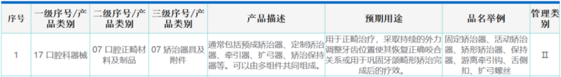 正畸矯治器一般通過計算機三維重建技術(shù)建立牙齒三維數(shù)字化模型,后經(jīng)軟件數(shù)字化模擬矯治設(shè)計,使用正畸矯治器用膜片在光固化快速成型(DLP、SLA等)技術(shù)加工的牙模(母模)上熱壓成型。其預(yù)期用途為“用于正畸治療,采取持續(xù)的外力調(diào)整牙齒位置使其恢復(fù)正確咬合關(guān)系或用于鞏固牙頜畸形矯治完成后的療效。”在我國作為第二類醫(yī)療器械管理,分類編碼17-07-07。