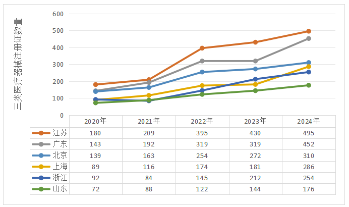 2024年國家藥監(jiān)局新批準我省第三類醫(yī)療器械注冊證452個,與2023年相比增加41.7%,居全國第二。