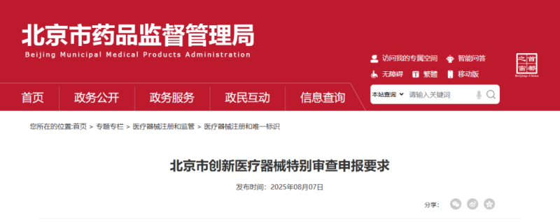 近日,北京市藥監(jiān)局發(fā)布《北京市創(chuàng)新醫(yī)療器械特別審查申報要求》,我們將其轉(zhuǎn)載如下,以供有創(chuàng)新申報需求的企業(yè)參考:
