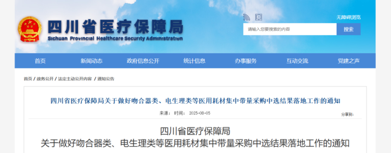 近日,四川省醫(yī)療保障局發(fā)布《關(guān)于做好吻合器類、電生理類等醫(yī)用耗材集中帶量采購中選結(jié)果落地工作的通知》,以下為通知具體內(nèi)容: